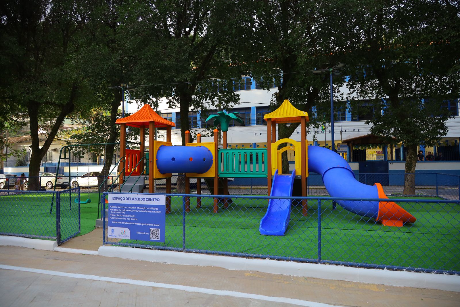 A Praça Robert Simões, um dos pontos mais tradicionais do Centro, ganhou um novo visual. A Prefeitura de Mangaratiba inaugurou nesta quinta-feira (04) a reforma paisagística completa do espaço, que agora conta com iluminação em LED, novo parquinho infantil, paisagismo renovado e chafariz histórico reativado. Além das melhorias estruturais, a