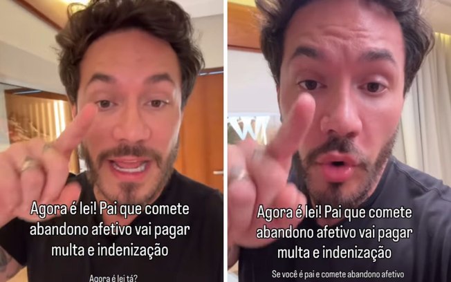 Em vídeo publicado no feed, Eliezer explicou o alcance da mudança. “Agora é lei, tá? Se você é pai e comete abandono afetivo, vai pagar indenização e multa”, afirmou. Em seguida, detalhou o conceito. “Não sabe o que é abandono afetivo? É negligência emocional com o seu filho.”