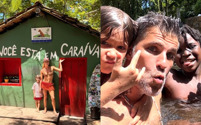 No registro publicado por Ewbank, ela aparece ao lado do filho mais novo, Zyan, de 5 anos, diante da icônica casinha verde com a frase “Sorria, você está em Caraíva”,  um dos cartões-postais do local que tem se tornado destino preferido de celebridades no verão. A família também está com Títi, de 12 anos, e Bless, de 11, que, segundo Giovanna, estão vivendo pela primeira vez a experiência de conhecer o vilarejo.