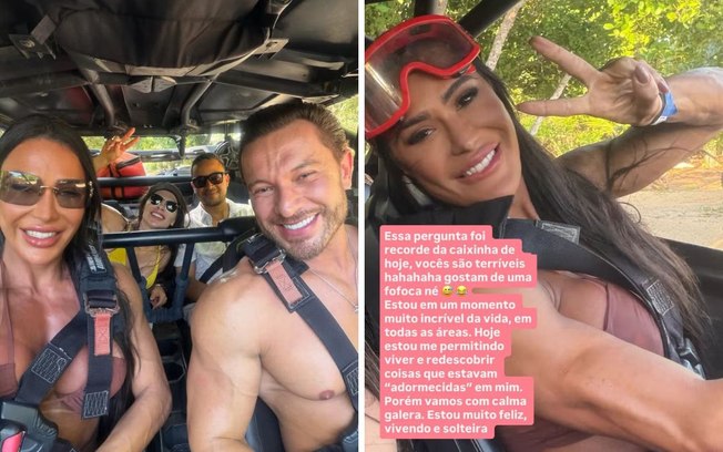 Os rumores começaram após Gracyanne publicar registros da viagem a Trancoso, no sul da Bahia. Nas imagens, a influenciadora apareceu ao lado de um homem loiro e musculoso, além de mostrar um buquê de flores recebido durante a estadia.