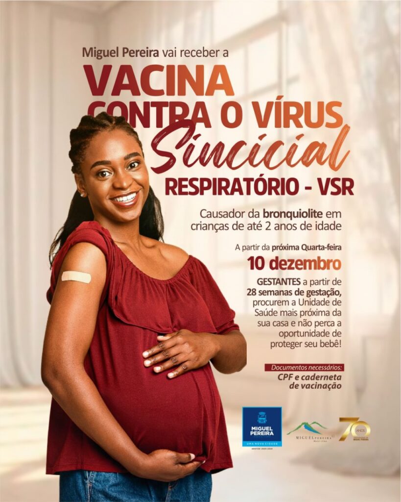 A Prefeitura de Miguel Pereira iniciou, nesta quarta-feira (10), a aplicação da vacina destinada a gestantes a partir da 28ª semana de gestação para a prevenção do vírus sincicial respiratório (VSR), principal agente causador da bronquiolite em recém-nascidos. Esta é a primeira vez que o imunizante é ofertado pelo Sistema Único de Saúde (SUS), marcando um avanço importante para a saúde materno-infantil no país.