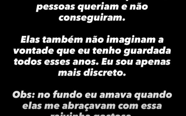 Do lado de fora, Fiuk usou seu perfil oficial no Instagram para rebater as críticas. Em tom enigmático, e cheio de indiretas, o artista sugeriu que os ataques teriam uma motivação pessoal antiga. “Aprenda essa lição. Nunca rejeite certas mulheres. Ou faça elas se sentirem rejeitadas”, escreveu ele nos stories.