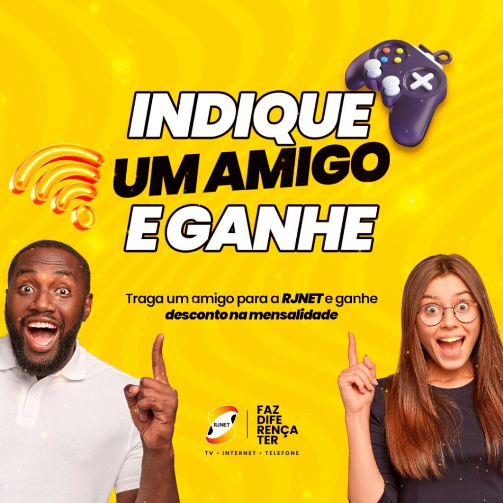 🤝 QUER PAGAR AINDA MENOS? Com a nossa campanha “Indique um Amigo e Ganhe”, o seu desconto pode ser ainda maior! Traga um amigo para a RJNET e garanta um abatimento especial na sua próxima mensalidade. É a conexão que une você aos seus amigos e ainda economiza seu dinheiro.